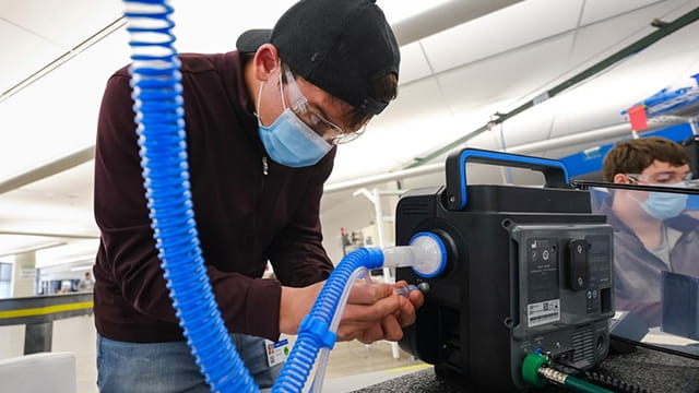 "We had this brand-new building, which was built with the thought to have spaces be very flexible and to have the latest technology, which included built-in cameras, microphones and speakers," McCrudden says. "This made the conversion to the hybrid modality much easier for faculty, and not only the in-person students, but also for the remote students."