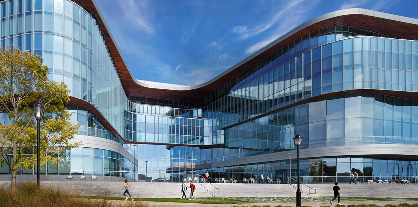 The Global Hub is the flagship building of the Kellogg campus, designed to inspire and support the next generation of business leaders. Completed in 2017, the planning, design and construction of this marvel on the lake was a true community effort and thoroughly reflects Kellogg’s values. As current Kellogg Dean Francesca Cornelli said in a 2020 interview, “Here you enter and you immediately get what the building is about. It’s about the community, it’s about all coming together… To me the Kellogg culture is where you are free to experiment and where you can take risks and it's okay if you fail.” The building nurtures and reflects these sentiments with an open, collaborative layout, inspiring and vast views of downtown Chicago and Lake Michigan and classrooms equipped to handle problems in an ever-changing world.