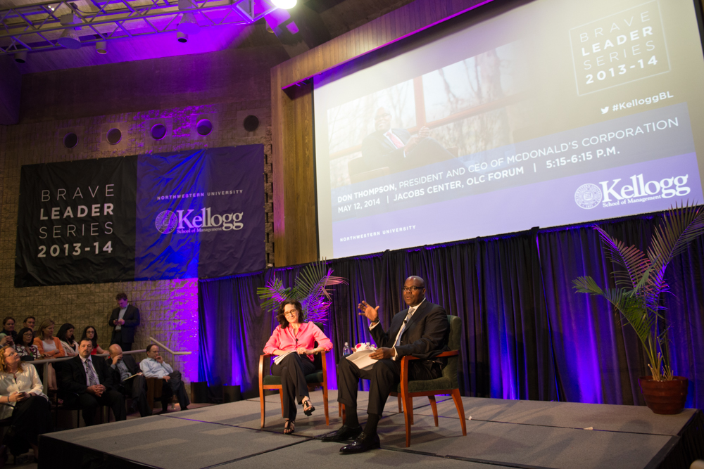 President and CEO of McDonald’s Corporation Don Thompson visited Kellogg Monday night to chat with Dean Sally Blount and students as part of the Kellogg Brave Leader Series. #KelloggBL