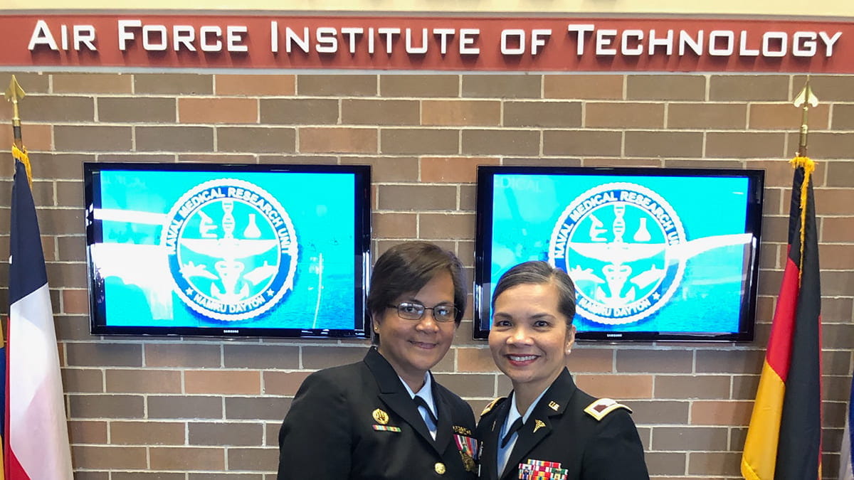 Photo: Bri Teneza (right) with sister Nimfa Teneza-Mora, who is also a physician and officer in the U.S. Navy