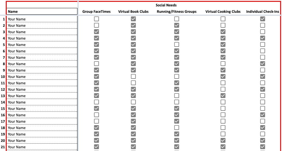 Below is our community board for members to come together socially while physically distancing (names removed):